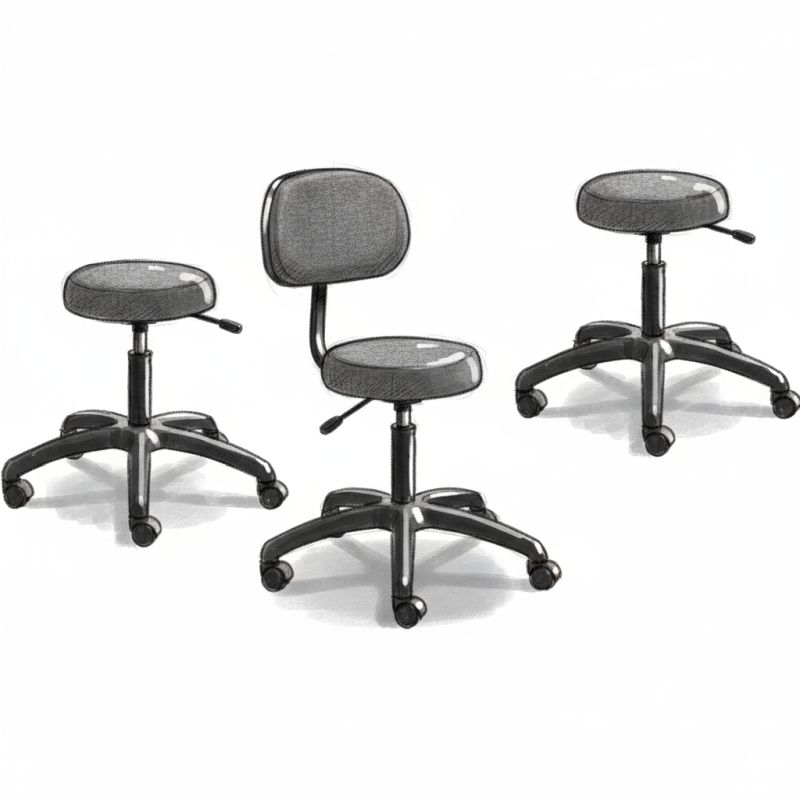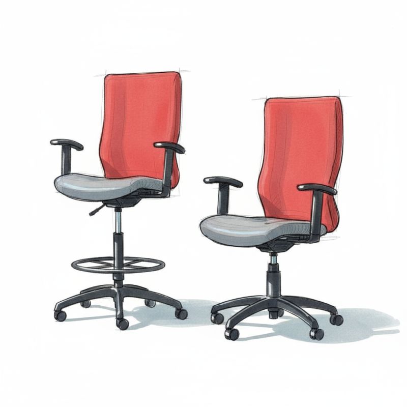 Height-adjustable chairs with footrings, providing ergonomic support for elevated workstations.